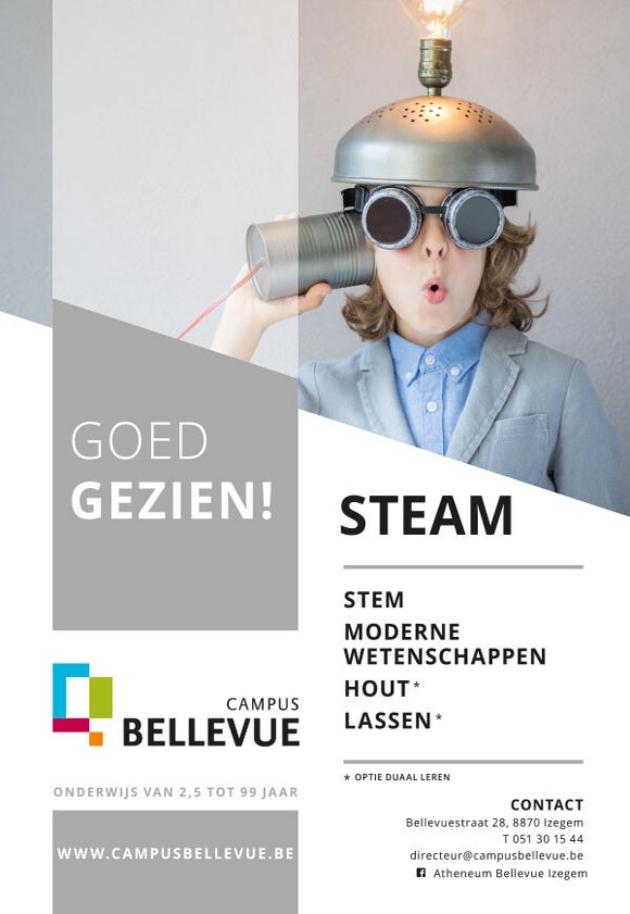 Op Campus Bellevue kan je kiezen uit een van onze drie sterk uitgebouwde domeinen. Je kan op verschillende niveaus een studierichting volgen. Talen voor de talenknobbels, mens voor de psychologen, leerkrachten, sociaal werkers en verzorgers van de toekomst en STE(A)M voor de wetenschappers, dokters, ingenieurs, lassers en houtbewerkers van morgen. Voor de rekenknobbels en toekomstige ondernemers bieden we economie aan in een zesjarige structuur.
