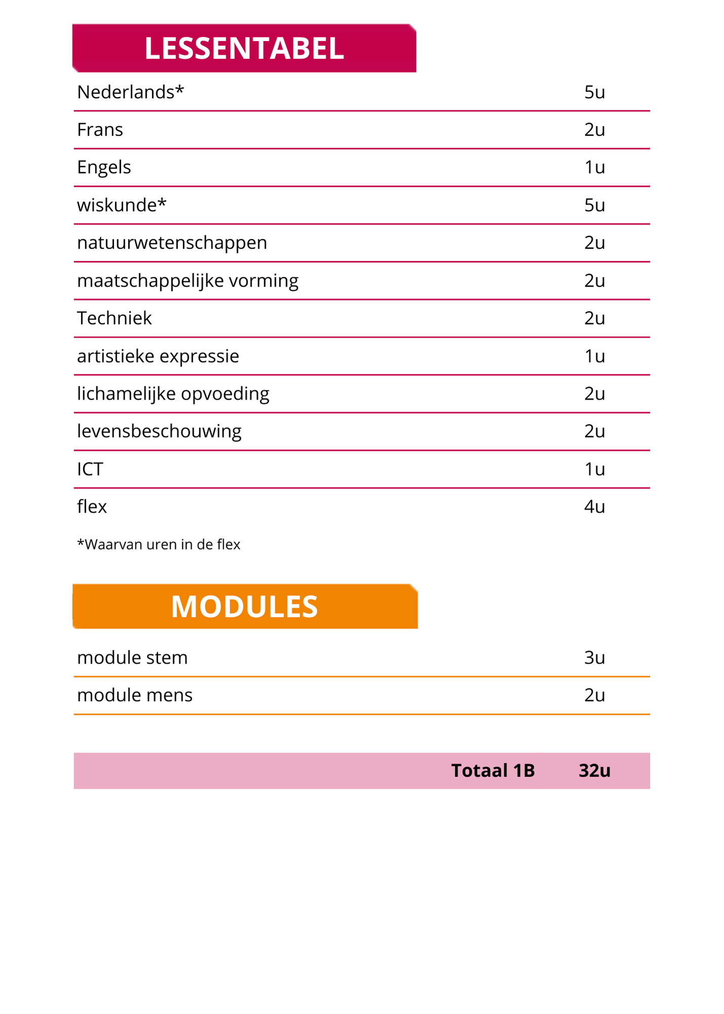 Elke week krijg je 2 FLEX-uren waarin je zelfstandig aan opdrachten werkt. Tijdens deze uren zitten leerlingen van 1B en 2B samen, zodat je ook van elkaar kunt leren.